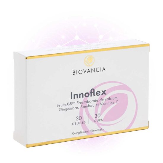Innoflex contient des ingrédients actifs comme le FruiteX-B™ qui favorisent le métabolisme du calcium, du magnésium et de la vitamine D.