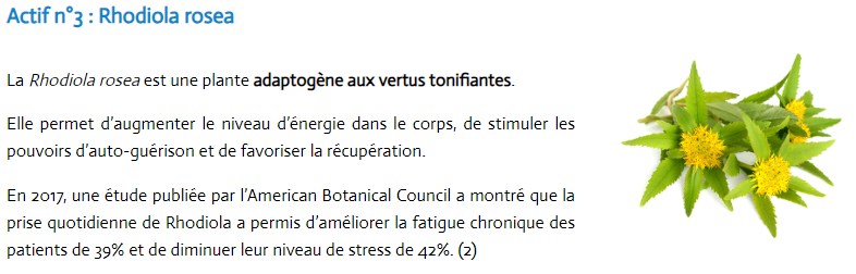 - Rhodiola rosea : Augmente l’énergie, aide à soulager le stress et contribue à la récupération.